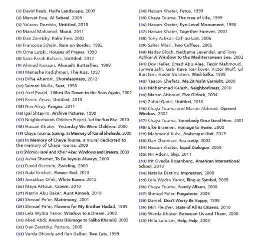 Emplacement des oeuvres d'art: fresques, statues, installations, ceramiques