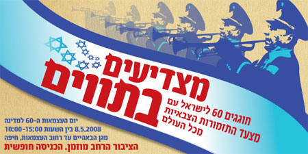 | Exhibits Israel art guide On 10 May, 10:00, Opening of an exhibition of textiles Peelings, by Rachel Kovo, Seam Gallery On May 15, Opening of the exhibition of photographies Urban Impressions by Yazan Khalili, free admission, French Cultural Centre, Nazareth On May 17, 20:00, Opening of the exhibition Pinecones by Avner Katz, Hecht museum, University of Haifa On May 19, 12:00, Opening of the group exhibit of photographs by Judith Guetta, Tali Cohen Garbuz, Vardi Kahana and David Adika, Oranim Academic College, Tivon On May 22, 18:00, Opening of the exhibition of drawings by Erez Golko, Muezzin for myself, Beit Yad LeBanim, Haifa Theater, Dance, Shows, Conferences On May 1, 10:00, Lecture by Alon Klivanov Eternal City - The History and Culture of Rome ,"'The Phoenix' at its Height - Baroque Rome" , Tikotin Museum of Japanese Art, Haifa On May 1st, 20:30, The Cause of Death, by Yael Navi, staged by Noya Lancet, produced by Beit Lessin, HaTsafon Theatre On 1 May, 20:30, Ehud Banai, Berale, Kibbutz Lehavot Haviva On May 2, 9:00, Conferences by Yitzhak Peleg, Avot Shoftim, and Yinon Shavtiel, From Jerusalem to the Galilee at the 2nd Temple, Absalon Institute, Beit Abba Hushi, Haifa On May 2, 22:00, Lital Shwartz, Krieger auditorium , Haifa On May 2, 22:00, Fragrance of the orchard, You sing along with Leibowitch Ilan and his group, Ladino songs and stories on Jerusalem of yesteryear, Beit Abba Hushi, Haifa On May 3, 20:30, the Israel Quartet 50 years jubilee, Shubert, Schumann, Ravel, Hecht Hall, University of Haifa On May 3, 20:30, The Joubran trio and Youssef Hbeisch, Concert Majaz, in collaboration with Beit Almusica, auditorium, Haifa On May 3, 21:00, The Cause of Death, by Yael Navi, staged by Noya Lancet, produced by Beit Lessin, HaTsafon Theatre, Kyriat Haim On May 4, 19:00, Benny Levy ''The Impossible Revolution '' Hebrew subtitles, French Cultural Centre, Haifa On May 4, 20:30, Open windows on the Mediterranee, the New Haifa Symphony Orchestra, direcetd by Omer Welber, with Michal Sasson, santur, Eti Ben-Zaken, singing and recitation, Amnon Joel, percussion: Rossini: Opening of L'Italiana in Algeria, Yoni Rechter: Santur Concerto, Rimsky - Korsakov: Capriccio Espagnol, Steinberg: "The bride unravels her braids and the groom faints" Songs of Love in Ladino, auditorium, Haifa On May 4, 20:30, The Cause of Death, by Yael Navi, staged by Noya Lancet, produced by Beit Lessin, HaTsafon Theatre, Kyriat Haim On May 5, 10:00, Conference by Smadar Giberman Carmi, Passion by Bach, Handel's Oratorio, Bet Abba Hushi, Haifa Erev Yom HaZikaron Details on our page Izkor On May 6 , at sunset . Day of remembrance for the fallen soldiers and for victims of terrorism On May 6, 20:00, siren An evening of songs and poems Kyriat Shmuel, Cultural Centre, with Itai Plaot Gan Habanim, Neve Sheanan, with Noam Zelitin Toliker Shahaf Beit Fanny Kaplan, Shaar HaAlyiah Neveh Yosef, Cultural Centre,20:30 the Beat 22:00, Assaf Amdusrski and the Carmelim HaTsafon Theatre, 22:00 Auditorium, Carmel Center, 22:00, Songs, chosen by Uri Kariv Yom HaZikaron Details on our page Izkor On May 7 , 11:00, Siren. Ceremonies in military cimeteries . Erev Yom Haatsmaut, On May 7, 20:15, ג€�Tipexג€� band, Stalos and Oren Chen, Hani Nachmias, Kiryat Sprinzak ג€“ Ofira Navon Park On May 7, 20:30, Independence Day song festival with ג€�Hatish Hagadolג€� and Cobi Afflalo , Central Carmel ג€“ Gan Haג€™Em) On May 7, 20:30, Moran Kiryati, folk dancing with Meir Amsalam On May 7, 21:00 ג€“ Fireworks displays throughout the city (Carmel Beach, Neve Shaג€™anan, Hadar, Kiryat Haim) On May 7, 22:30 ג€“ lighting up the skies ג€“ light, laser and special effects display, German Colony ג€“ Ben Gurion Blvd. On May 7, 23:00 , Independence Day stage for youth from with "The Yehudim," Cobi Afflalo, DJ Saג€™ar Meshiach, Neve Shaג€™anan ג€“ Sportek Haifa Yom Haatsmaut, On May 8, Receptions, games, activities, quizzes, music and dancing in the cityג €™s neighborhoods: 11:00 14:00ג€“ Kiryat Sprinzak ג€“ Eli Cohen Park 11:00 14:00ג€“ Kauders Park ג€“ Gaston Deferre Park Starting from 17:00 Ramat Alon public park On May 8, 9:00-14:00, army bases are open to the public:Ramat David, the Haifa Technical College On May 8, 12:00-14:00, ג€�Tribute to Israel Paradeג€� ג€“ free entrance, the public is invited The IDF and Haifa Municipality invite you to enjoy a unique musical experience, involving the participation of leading military bands from all over the world (Israel, USA, Britain, Russia, Poland, Germany, Romania, Holland, France, Brazil) playing a selection of popular and favorite musical pieces. The parade will march through the streets of Haifa ג€“ Ben Gurion Blvd. via Allenby St. and Rothschild Blvd. At 14:00 Performance of the military bands and a breathtaking parachute demonstration in Kiryat Eliezer stadium On May 8, During the afternoon hours ג€“ aerial demonstration by the Air Force and a military ship demonstration by the Navy, Haifaג€™s beaches On May 8, 20:30, Festive concert by the New Haifa Symphony Orchestra, conducted by Maestro Noam Sherif ג€“ for members only, Haifa Auditorium Free entrance for the general public to all of Haifaג€™s museums and to Madatech For more information call 106. On May 9, 9:00, Conferences by Gila Doron, Avot Shoftim, and Yinon Shavtiel, From Jerusalem to the Galilee was the time of the 2nd Temple Absalon Institute, Beit Abba Hushi, Haifa On May 9, 10:00, 12:00 and 14:00, Hai Bar, the Carmel natural reserve, 3639 * On May 9, 10:00, 12:00 and 14:00, Nahal Mearoth, 3639 * On May 9, 10:00, 12:00 and 14:00, Nahal Taninim and the antique mill, 3639 * On May 9, 10:30 and 14:00, National Park Beit Shean, 3639 * On May 9, 20:30, Pergamon Piano Quartet from Berlin, Mozart and Brahms, Kibbutz Eilon On May 9, 22:00, Israel Quatorza. Stand-up, Krieger auditorium On May 9, 20:00, Evening i