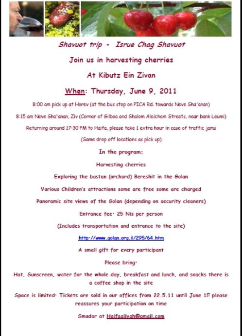 | Trips, Excursions, nature See at the end of the page Museums exhibits and activities Haifa museums 1599 50 22 11 Haifa Art Museum Window on reality, interactive exhibit for all ages, 8523255, Haifa Art Museum Pirates Museum-National Maritime Museum: The pirate, the flag, and the skull, Cinematrix Madatech, Museum of Science, Technion Historic Building, Hadar Madatech Hai Park, Kyriat Motskin Zoo, Haifa Observe birds at Lake Hula, 6937069 Meet the birds 9:00, 11:00,Botanical Gardens, Oranim Academic College, 1800-301080, Kyriat Tivon The country of Marzipan, Marzipan Museum, 6772111, Kfar Tavor Chocolates at Galita, 6755608, Kibbutz Degania Maabadada, interactive exhibit, interdisciplianary creativity, Janco Dada Museum, 9842350, Ein Hod On the footsteps of kangaroos and koalas, Gan Guru, 6488060, Kibbutz Nir David Tour of the kibbutz in a little train, reservations 0545658821, Kibbutz Ein Gev The magic of photography, Open Museum of Photography, Tel Hai Industrial Park History of illustration, drawings for famous children books by Sharon Alpert, Library, Kibbutz Afikim Shalom adon Van Gogh, Hi Mr Van Gogh, Artis Israel for art education, Traveling exhibition, Opening ceremony on May 22 at 19:00 till May 29, Renaissance High School exhibition hall, Kfar Qara Shows, theater, puppets, stories etc... On May 3, 17: 30, Yuval HaMebulbal, The star of wishes , Cultural Center, Naharyia On May 3, 17: 30, The Jungle Book, adapted from Rudyard Kipling, staging by Amir Gutman, Rina Shani Cultural Center, Hadera On May 4, 17: 30, Yuval HaMebulbal, The star of wishes , Cultural Center, Maalot On May 4, 17: 30, Pim Pam Po, the giant with a big heart, Michal Hazon, staging of Israel Gurion, Alex Meir Cultural Center, Or Akiba On May 5, 17:00, Petite suite, The Haifa Symphony Orchestra, Family Practice - The Mandolin and the Mandola, introductionto Concert no. 4 from the ClassicKids Series "The Violin Maker", Jacob Reuven and Alon Sariel, mandolin players, Introduced by Idit Shechtman, Jacob and Alon will introduce the young audience to a less well known instrument - the Mandolin from the lute family - this instrument, like the guitar, can be plucked or strummed. Haifa SymphonySubscription holders and Conservatory students - Free admission. reservations: 04- 8626014 Please present your subscription card or conservatory student card, Dunie Weizman Conservatory of Music, Haifa On May 5, 17: 30, The silver platter, written and staged by Galia Beeri, produced by the Mofa Theatre, Cultural Center, Karmiel On May 7, 11:30, The fisherman and the golden fish, by Ronen Peled, produced by Theater Shelanu, Theatre HaTsafon, Kyriat Haim On May 7, 12: 30, Berale kids, Snow White, the flamenco company COMPAS Berale, Kibbutz Lehavot Haviva On May 14, 10: 00 -14: 00, Gan HaYeled, Haifa, Center for Children with Special Needs Invites you to a Spring fair and happening for the whole family, Activities for children, creative workshops, animal care –feeding and petting, coffee and food stalls, flea market: toys, clothes, jewelry, home appliances and books. All profits will go towards activities for children at Gan HaYeled, Free admission, Details 04-8377139 Mobile 0523-900777, Gan HaYeled Center, Gan Haem (Carmel Centre) On May 14, 15:00, Gnomeo and Juliet, Tikotin Museum of Japanese Art, Haifa On May 14, 18: 00, Month of Arab culture, Circus, free entry, Beit HaGefen, Haifa On May 15, 17: 30, Tubi Dubi, Shlomit Koren, staging by Tuvia Tsafrir, Theatre, Kiryat Atta On May 15, 17: 30, Yuval HaMebulbal, The star of wishes , Yad Shitrit Cultural Center, Tiberias On May 15, 17: 30, The lion that loved strawberries, after the book by Tirzah Atar, by Smadar Shir, Frank Mor and Moshe Datz, Rina Shani Cultural Center, Hadera On May 16, 17:00, The New Haifa Symphony Orchestra, Classikids, The Violin Maker, Aviv Ron, Conductor, Irit Bassan, actress, Yuval Aderet, violin maker, With a guest violinist A musical performance for children introducing classical music and the art of violin making, through a story told in rhyme. A story about an event that took place - not long ago,in a land - not so far away, with an experienced violin maker and a mischevious Italian violin who became fed up lying silently on his back. One day he decides to get up and shake off the dust whilst setting out on a journey....Krieger Center, Haifa On May 16, 17: 30, Tubi Dubi, Shlomit Koren, staging by Tuvia Tsafrir, Theater, Kiryat Atta, On May 16, 17:30, Festival of rhythm, (4-9) Yad LeMeginim, Kibbutz Yagur On May 16, 17: 30, Yuval HaMebulbal, The star of wishes , Kimaron Cultural Center, Beit Shean On May 17, 17: 00, Story time, Bactus and Carius told by Orna Hochman, Library Maintz, Merkaz HaCarmel, Haifa On May 17, 17: 30, Tubi Dubi, Shlomit Koren, staging by Tuvia Tsafrir Theatre, Kiryat Atta On May 17, 17: 30, And the wolf shall dwell with the lamb, the Artsi Theatre Company for Youth, Cultural Center, Nesher On May 18, 17: 30, Tubi Dubi, Shlomit Koren, staging by Tuvia Tsafrir, Theatre, Kiryat Atta On May 18, 17: 30, 101 Dalmatians, staging by Ofer Shafrir, adaptation by Assaf Ashtar, Kibbutz Kinneret On May 19, Saba Tuvia’s animal stories, by Irit Givol and Hagai Elkayam, Cultural Center, Afula On May 20, Jacob's Ladder Festival, Kibbutz Ginosar On May 21, Jacob's Ladder Festival, Kibbutz Ginosar On May 21, 11:30, The Haifa Chamber Music Society , Magical Sounds , with Nitza Shaul, Absent minded Carnival , the storyof Camille Saint Saens, Rappoport Hall, Haifa On May 22, 4th Olympic Games for kids, Hadera On May 23, 17: 30, Story time, The most elegant giant in the world, by the Sameach Theatre, Library, Neve Yosef, Haifa On May 24, 17: 00, Story time, The butterfly with transparent wings, "told by Irit Weizman Minkowicz and Sonia Kaplan, S Shalom Library, Neve Sheanan, Haifa On May 24, 17: 00, Story time, The Princess and the toad, by Yaron Sancho Goshen, Mediatheque, Romema, Haifa On May 24, 17: 00, Story time, The bird of the soul told by Yael