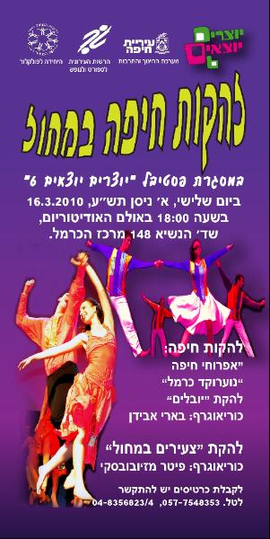 | Exhibits, workshops, guided visits, museum Israel Art guide Haifa museums 1599 50 22 11 Mane Katz Museum Yiddishkeit, illustrations for Shalom Aleichem stories, lithographies by Mane Katz and Anatoli Kaplan Maritime National Museum, David Gerstein: Sea, Mud and Salt, looking at the Dead Sea, , paintings New discoveries of marine archeology , Shikmona's treasures Terracotta , Figurines from ancient times, Pirates, the skull and the flag Haifa City Museum Ottoman Haifa ,by curator Ran Hillel, closes June 29, In parallel with this exhibit, guided walks in the old city with architects, see details at paragraph Trips, excursions, nature, reservation: 049115888 Tikotin Museum of Japanese Art Haifa Museum of Art Shelf life, on collections and collectors delight of collectors, Opening on February 6th, 19:30, Haifa Museum of Art Anna Veronica, paintings by Maya Bloch, Coulee profonde paintings by Gilad Ratman, Lust and tears installation by Lior Waterman, Moving targets video by Erwin Olaf, Center for the Arts In paper, works from ethnological and artistic collections in the Haifa museums and of works done for this occasion, closes May 16, paper cutting our from various countries, China, Japan, Mexico, Holland, etc impressions, engravings and contemporary works. The Art Center is transformed in a space for exhibition and creation Hecht museum, Haifa University Archeology, art, history, exhibits: The great revolt, fishing and hunting village next to the lake of Galilee 23000 years ago, Madatech, National Science museum,Technion historic building Interactive displays,guided visits, demonstrations, Cinematrix ,My green house Wizo Academic College for design and education, Haifa The Pyramid, , Haifa,Center for contemporary art, Pyramida, Industrial colors, by Dov Haller, and New York, group exhibit by New York Societies of etching and of monotype , Jeff Atwood, Marshall Arisman, Nivi Alroy, Harvey Breverman, Rachel Burgess, Katherine Butler, KNaomi Campbell, Ellen Coleman Izzo, Ann Chernow, Tanya Dajcic, Leslie Eliet, Deborah Freedman, Kirsten Flaherty, Eduardo Fausti, Jon Fasanelli- Cowetti, Stephen A. Fredericks, Véronique Godard, Mitchell Goldberg, Natalie Guigni, Cristian Le Gars, Sarah Hauser, Martha Hayden, Motoko Hara, Jayne Holsinger, James Haggerty, Carolyn J. Jao, Yuriko Katori, Atsuko Kawai, Denise Kasof, Richie Lasansky, Deborah Luccio, Marco Luccio, Brian Lynch, Harlan Mathieu, Toko Matsuda, William Maxwell, Moira McCaul, Erin L. McMahon, Marjorie Miller, Ruth Moscovitch, Helen K. Manzo, Judy Negron, Mark Pagano, Jonathan Pincus, Sarah Plimpton, Bill Ronalds, Robin Sherin, Claire Seidl, Evan Summer, Tara Sabharwal, Sara Sears, Justin Sanz, Ruchama Schecter, Kris Corso Tolmie, Monika e. De Vries Goheke, Steven Walker, Bruce Waldman, opening on February 27, 12:00, closes April 27 O*GE Gallery, HaNamal 35, Haifa Beit Chagall, , Haifa, Israel Association of painters and sculptors, Moshe Pinchassi opening February 14th, closes March 2nd Beit Yad LeBanim, Haifa, Comfort, comfort my people, paintings by Gerahrd Strastengen, Beit Yad Lebanim, opening February 18, 18:00;From a different perspective, exhibition of photographs by artists from North, opening March 11, 18:00 Beit Nagler, The tree of life, Exhibit of ceramics by Haya Tuma, and of drawings by Michael Tuma, opening on January 30, 18:00, closes March 2. Paintings by the artist - Sim Govic "Close and Personal", opening March 6, 12:00 HaAgaf gallery,Haifa, History of secular grammar, by Zvi Tolkovsky, opening January 27 Oranim Academic College, Kyriat Tivon A dream that dies in a dream, paintings by Avraham Ofek and Avishay Ayal, opening on January 11 Painting camp 2010, group exhibition, opening March 19 Wilfrid Israel Museum, Kibbutz HaZorea, Traces of a moment, paintings Elegant and subtle beauty, XXth century Chinese inks opens January 9, closes April 4 Ein Harod Museum of Art, Israeli art collected by Gaby and Ami Brown Janco Dada Museum, Ein Hod Human Theater sculptures by Dorothy Robbins, Museum of dreams, paintings and digital images accompanied by music by Yehuda Poliker Ein Hod Gallery, Hei Buba, group exhibit using mannequins, opening March 19, closing April 22 Ein Hod galleries , in the artists village Gallerie of Old Cesarea, Cesarea French Cultural Center, The olive tree, paintings by Mahmoud Badarneh Gallerina, Moshava Bath Shlomo, Memories, mixed media, group exhibit, Papier mache, Batya Gazit, Clay clothes, by Aviva Menache Yigal Alon Center, Kibbutz Ginosar, After time, exhibition of sculptures by Israel Rabinowicz and Wandering roots by Becky Gutti, paintings and sculptures, opening on March 27 12:00Open Museum, Tefen Industrial Park, Textiles stories, by Noa Eshkol, tapestries Beit Gabriel, Lake of Galilee Tsemach junction, Beit Nechushtan, Kibbutz Ashdot Yaakov Song of the lake, group exhibit about the Hula lake l Tamra Municipal Gallery, Zeitoun, mixed media, for appoitment:0528785328 Kabri Gallery, Drawing attack, by Yael Balaban, opening January 23, Kibbutz Kabri Artists House, Hadera, The phenix is born from the ashes,paintings by David Leviathan Tal Gallery, Kfar HaVradim, Entrance, mixed media, Tanya Bubnov, Talia Kredo, Zfia Deagan, Hill Greenfeld, opening on March 27, 12:00 On March 23, 11:00, Gallery tour with Yaniv Shapira and the curators Tami Katz-Freiman, Rotem Ruff, Ilana Tenenbaum and Yeal Hazut, Haifa Museum of Art On March 25, 17:00 Guided tour of the Haifa City Museum and of the "German Colony" Cinema In March at the Haifa Cinematheque Cinema Tikotin, see below Cinemas de Haifa Theater, Dance, Shows, Conferences On March 1, 9:30-12:30, Culture in the eye of the camera, Lecture and projection of a film, serie B, Easy Virtue, (UK), Lecture by Dr. Gustav Meisels, Beit Abba Hushi, Haifa On March 1, 17:00, Travel in a box, danse and choreography by Nima Jacoby, Community Center, Binyamina ⌂On March 1, 19:00, Judaism in Poland, from the 13th century to the second world war, a world that was and has dis