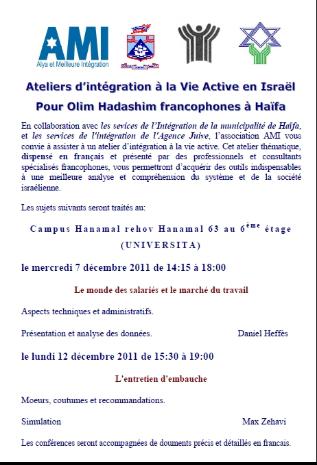 | Annonces de l'Association pour l'Immigration a Haifa |