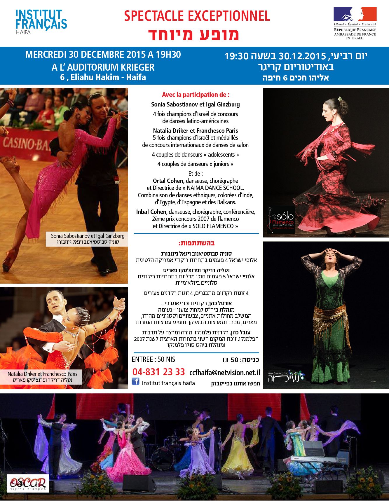 Le 2 décembre, 15 :45, High School Festigal, Hanoukka 2015, de Uri Gross, mise en scène de Hanoch Rosen, chorégraphie de Oz Morag, Centre des Congrès Internationaux, Merkaz HaCongressim, Haïfa Le 2 décembre, 19 :15, High School Festigal, Hanoukka 2015, de Uri Gross, mise en scène de Hanoch Rosen, chorégraphie de Oz Morag, Centre des Congrès Internationaux, Merkaz HaCongressim, Haïfa