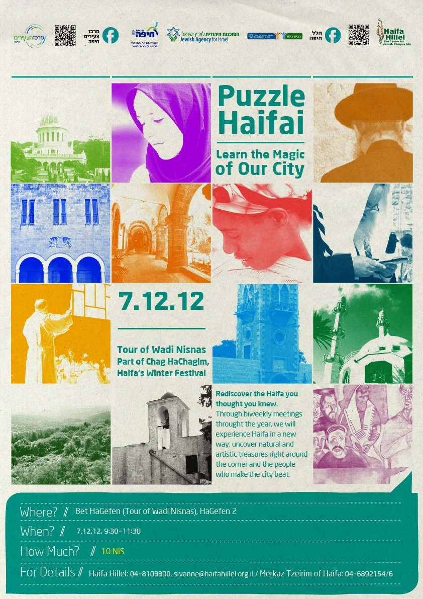 On December 15, 9 :00-17: 00, Hanukkah 2012 workshop, candles, chocolate donuts and honey bee observation, pygmy goats and pets, Shdemot Dvorah On December 15, -10:00, Holiday of Holidays, for children and the whole family, see details below “For adults”, Wadi Nisnas, Haifa On December 15, 10:00, Kofiko, by Tamar Borenstein Lazar, staging by Nathan Datner, Yad LeMeginim, Kibbutz Yagur On December 15, 10:00, Chanukah at Madatech, Professor Light show, demonstrations on light, shadow of a story, legends in lights and shadows, exhibitions, jewels by Professor Schechtman, National Museum of Science, Technion historical building, Haifa On December 15, Creation in green, paper mache and recycled material, details and reservation Racheli 052-8615344, Moshav Liman On December 15, 10:00-14:00, Leather craft workshop, Center for the Arts, Kibbutz Afeq, details and reservations Eldar 04-8784330 or 052-8391797 On December 15, 10:00-16:00. Creative workshop with pumpkins, details and bookings 052-3751752, Betzet On December 15, 10 00, Kofiko, Tamar Borentein Lazare, staging Nathan Datner, Yad LeMeginim, Kibbutz Yagur On December 15, -10:00, Jacob’s ladder festival, activities for children, Nof Ginosar On December 15, Celebrating Hanukkah, Winter Festival of birds, art workshops and photography, making birds with natural products, photo and photomontage, portraits of birds 04-6816705/9/10. Open Museum of Photography, Tel Hai Industrial Park On December 15, 10 :00-15: 00, Between light and darkness, Hanukkah museum, origami artist Ilan Nerivi theater (3 +), dating-stories in the galleries, we have not invent the wheel, interactive exhibition, seed-plastic production line (10 +), creative workshops for all ages, Tefn Open Museum, Industrial Park, Tefen On December 15, 10 :00-17: 00 What are the trees?, Center for the Arts, Haifa Museum of Art On December 15, 11 :00-13: 00, Workshop inspired by the exhibit Double vision, Tikotin Museum of Japanese Art, Haifa On December 15, 11 :30-13: 00, Meeting Point, workshop inspired by the exhibit Login / Logout (5 +), Museum of the City of Haifa On December 15, 10 :30-14: 00, Handicraft studio, Paper Dolls Japanese, 11: 00, Guided visit of the galleries, Tikotin Museum of Japanese Art, Haifa On December 15, 10 :00-15: 00, Chagidada at Hannoucca, theater, music, acrobats, workshops and tours On December 15, 11:00, Speaks of himself with Hanoch Rosen, Pantomime, Theatre HaTsafon, Kiryat Haim On December 15, 11:00, Rain Bird, a paper story, by Galia Gered Levi, Nomie Yoeli and Yori Sochnov (5-10), Museum of Photography, Tel Hai On December 15, 12 00, Kofiko, by Tamar Borentein Lazare, staging by Nathan Datner, Yad LeMeginim, Kibbutz Yagur On December 15, 16:45, Sweetness Hop Festival No. 5, Noa Brenner, staging by Gilad Kimchi, choreography Revital Zebulonov, International Convention Centre, Merkaz HaCongressim, Haifa On December 15, 17:00, Speaks of himself with Hanoch Rosen, Pantomime, Theatre HaTsafon, Kiryat Haim On December 15, 19:15, Sweetness Hop Festival No. 5, Noa Brenner, staging by Gilad Kimchi, choreography Revital Zebulonov, International Convention Centre, Merkaz HaCongressim, Haifa