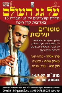 July 4th, Music on the roof, music of the world, roof of the Community center Tveriah,