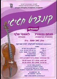 | Exhibits Israel art guide On January 3, 18:00, Opening of the exhibit Flowers and Landscapes, paintings by Sonia Danziger, Beit Yad LeBanim, Haifa On January 6, Opening of the exhibition of paintings, Scratches, by Revital Lesik, Goren Center for the Arts, College of the Jezreel Valley On January 12, Opening of the exhibit "a Fish and a Shark" , illustrations for a book written by Gilad Shalit, Edge Galley, Naharyia On January 12, 12:00, Opening of the exhibition "A woman and a table," paintings by Rina Ezroni, Artist Gallery, Ein Hod On January 12, 12:00, Opening of the exhibition "Advanced Nature," paintings and photographs, by Dubinksi Zvi and Ben Victor Reshef, Yigal Alon Centre, Kibbutz Genossar On January 19, Inauguration of the group exhibition " Local Testimony", press photos by photographers working long-term in the region Israelis, Palestinians and foreigners, Open Museum of Photography, Industrial Park Tel-Hai On January 26, 11:30, Opening of the exhibition of paintings made from paper pulp, by Sally Levin Bar, Seam Gallery, Moshav Megadim On January 31, 19:00, Opening of the exhibit by Corine Rouffi, "Men are unhappy at being unable to realize their dream", Haifa French Cultural Center Theater, Dance, Shows, Conferences The conferences on Judaism are preceded by * On January 1st, 20:30, The Apples of the Desert, by Savyon Liebrecht, setting by Oded Kotler, produced by Beit Lessin, HaTsafon Theater, Kyriat Haim On January 2, 17:30, conference by Naomi Rotenberg, The revival of Hebrew and its development, College for Jewish Culture, Haifa On January 2, 19:30, Le Petit Prince, Introduction to the important things: Love and Friendship, conference by Dr. Haim Shapira, Beit Abba Hushi, Haifa On January 2, 20:00, Open study group: Hamakom and Hazman, with Dan Crystal and Ziva Ornai of the Gendel Institute of Jewish Studies , Hebrew University, Jerusalem, Beit Yad LeBanim, Haifa On January 2, 20:30, The Apples of the Desert, by Savyon Liebrecht, setting by Oded Kotler, produced by Beit Lessin, HaTsafon Theater On January 2, 20:30, the House Master , by Anat Gov, setting by Edna Masia, music by Alon Olearchick, produced by the Cameri, Haifa Municipal Theater On January 2, 22:00, Yeheli Sobol, Pub Elijah, Haifa On January 3, 18:00, Long life to Columbus, conference by Kobi Luria, the Cinematheque Hall, Haifa On January 3, 19:00, Anniversary: 70 years of the Zoo and the Biology Institute funded by Pinhas Cohen, conference by Shorer Yaakov, Beit Yad LeBanim Exhibition of animals in the lobby of Beit Yad LeBanim, Haifa On January 3, 20:30, meeting with the filmaker Amos Gitai presented by Dr. Uzi Elida, and screening of the film "Disengagement", Haifa Cinematheque On January 3rd, 20:00, Jazz, the large orchestra at the time of Swing, conference by Dr Dan Cohen, Tikotin Museum of Japanese Art, Haifa On January 3, 20:30, the Children of Darkness , in Yiddish, by Tomer Ben Zvi Teitelbaum, staged by Moti Aberbuch, produced by the Yiddishspiel, Rappoport auditorium, Haifa On January 3, 20:30, Medieval Liturgical Music and Music from Georgia, by a group of four singers from Georgia, accompanied by the quartet of the St Pantaleon church, St. John Church, Haifa On January 3, 20:30, The Apples of the Desert, by Savyon Liebrecht, setting by Oded Kotler, produced by Beit Lessin, HaTsafon Theater On January 3, 20:30, the House Master, by Anat Gov, setting by Edna Masia, music by Alon Olearchick, produced by the Cameri, Haifa Municipal Theater On January 3, 21:00, Tchekov, Theatre and singing, by Limor Yatsik, the Studio, Haifa On January 3, 22:00, Assaf Sirkin Trio, Martef 10, Haifa On January 3, 22:00, Metropolin, the Beat, Haifa On January 4, 10:30, Dreams , conference by Shneior Einam, Tikotin Museum of Japanese Art, Haifa On January 4, 16:00, Russian Theater in Haifa, Rappoport auditorium, Haifa On January 4, 20:30, Violette Salama, the New El Midan Theater, Haifa On January 4, 21:30, You are Young only Once, by Ron Oldridge, staged by Lesley Lawton, produced by the Municipal Theater of Beer Sheva, HaTsafon Theater, Kyriat Haim On January 4, 22:00, Funckenstein, City Hall, Haifa On January 4, 22:00, Eran Zur, Stolen Waters,Martef 10, Haifa On January 4, 22:00, Let's sing together, Beit Abba Hushi, Haifa On January 4, 22:00, Israel Katorka, stand-up, Krieger auditorium, Haifa On January 4, 22:00, Three people in half an apartment, Beit Nagler, Kyriat Haim On January 5, 11:00, Hommage to Hulda Gurewitch, the White Angel, Mother of Injured, with the participation of the mayor of Haifa, Yona Yahav, and his deputy Rami Levi, Sheikh Abu Halabu Ralev, secretary of the Druze sector of Ir HaCarmel (Dahliat al Carmel and Usfyiah) and the singer Ruthi Safroni., presentation by Shlomo David, Beit Hana Hushi, Haifa On January 5, 11:00, Dancing on the beach (weather allowing),Dado promanade and Naoth beach On January 5, 12:00, Festive Concert in honor of the New Year, Bach and Vivaldi, St John Church, Haifa On January 5, 19:00, Evening of literature and music, with the poet Victor John, the singer and composer Sergei Kolmanovski, Beit Heina, Haifa On January 5, 20:00, Literary evening, for the occasion of the publication of the book Hadar, with the editor, Polina Witman and Amikam Yassur, Pevzner library, Haifa On January 5, 20:15, the Zamir quartet plays Haydn. Singing for women with singer Riki Ogel, Cultural Center of Religious Neve Sheanan, Haifa On January 5, 20:30, the Ensemble of Soloists of Tel Aviv, directed by Cathy Dabransny, Vivaldi and Tartini, Rappoport auditorium, Haifa On January 5, 20:30, Russian Theater in Haifa, Rappoport auditorium, Haifa On January 5, 21:00, Shlomi Shaban and Pablo Rosenberg, Congress Center, Haifa On January 5, 21:00, The Apples of the Desert, by Savyon Liebrecht, setting by Oded Kotler, produced by Beit Lessin, HaTsafon Theater On January 5, 21:00, Bab el Hadeh, in Arabic comedy for the whole family, auditorium Krieger, Haifa On 6 January, 10:00, Acre, 4,000 years of h