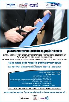 | From April 30 to May 2, Osho Spring Conference, yoga, meditation, chakra, dance, details and inscription: 0524684434, Kibbutz Beit Oren, Film Festivals at the Cinematheque, Ecolnoa, films about environment Korean films Israeli experience Films about workers From May 2 to june 16, Month of Arabic Culture and Literature, Beit HaGefen, Haifa On May 7, 8 and 9 Jacob's Ladder festival , Irish music, Bluegrass, Folk, Roots and Blues, with Amos Zimmerman, Bracha Ben Avraham, CHRIS COOLE (Canada), COUNTRY ROADS, Cúnla, Diane, Ada & Friends, Ёlki Palki, Et al, FOGGY HOGTOWN BOYS (Canada), The Groovy Junkyard Duo, Harold Jacobs Project, Havurat Atomic, Hazel Hill String Band, Holler, Howard Gladstone (Canada), Jason Feddy (UK/USA), JUST MARRIED (USA), LA VACHE QUI RIT (France/Israel), Larry & Mindy, Lilac Sheer & Shay Tochner, Margaret's Coffee, NOAM DAYAN BLUES BAND with SWEET MAMA COTTON (USA), Omer Leshem Band, OY DIVISION, RED MEADOW, Rina Sheleff, Sandy Cash, SheRock, Shomer Haesh, The Shuk, TRiAD, TSANCHANI BROTHERS, Tzalool, Unstrung Heroes, Yaniv Horovitz & The Barefoot Band, Kibbutz Ginosar On May 8, 9:00, Commemoration of the Victory, hommage to the Veterans who faught during WWII, Herzl street, Hadar, Haifa On May 11, Lag BaOmer, on Shimon Bar Yochai's tumb, Meron From May 11 to 13, Hebraic Aspects of the Renaissance, program of the international conference, Haifa University On May 13 and 14, Students Festival, Infected Mushroom, HaDag Nachash, Shalom Hanoch, Berry Sakharov, Aviv Gefen, Arik Berman, Stelle Maris, Yirmi Kaplan, Eifo HaYeled, competition of decorated cars, dances, etc... Technion, Haifa On May 14, Celebration of the Mass by His Holiness the pope Benoit XVI, Precipice Mount, Nazareth On May 19, 14:00, Inauguration of HaifaTech, Institution for the learning of computer skills. Click to get the invitation On May 19, 17:00, 12th race of Haifa, starting at Merkaz Carmel On May 20, 17:00-20:15, Conference, Child developpement in the mirror of time, Details 8288622/3, Haifa University On May 22, 9:00-15:00, Handicrafts market, Nordau avenue, Haifa On May 23, Wheels of hope, the most important bike event in Israel, to profit the NPO Etgarim/Challenge, 3 paths, 12, 30, 55 km details and inscriptions 1700700305 next to Afula On May 23 , Bustan in the city , Wadi Siach festival, Bustan Kiat, 12:00-13:00, 13: 00-14:00 meditation, 14:00-15:00, yoga-laugh, 15:00-16:00, Thai massage , 16:00- 17:00, healing,17:00-18:00, drawing and creation, 18:00-19:00, a new life, participation to expenses , 10 shekels to help conservation and care of Wadi Siach, Haifa On May 25, 26 and 27, "Bikourim" Cheese and wine, auditorium gardens, Merkaz HaCarmel From May 25 to 27, Haifa Fringe Festival The soccer champions league final Manchester-Barcelone,will be transmitted from Dado beach, by Modi Bar-On, Nadav Yakobi, Itsik Zohar, with Ron Kaufman, Ofer Shechter, Miki Geva and Rami Fortis, free entrance 27/5 at 19:00 On May 27, 28 and 29 , Festival Maestro, concerts and master classes, music workshops and art, visiting museums and galleries, Ein Hod From 28 to 30 May, 11th Festival of poetry, Metulla On May 29, 9:00-15:00, Handicrafts market, Nordau avenue, Haifa On May 31 and June 1, 18:00, The Dibbuk revisited by Dr. Dorit Yerushalmi and Professor Shimon Levi, Hecht Center, University of Haifa |
